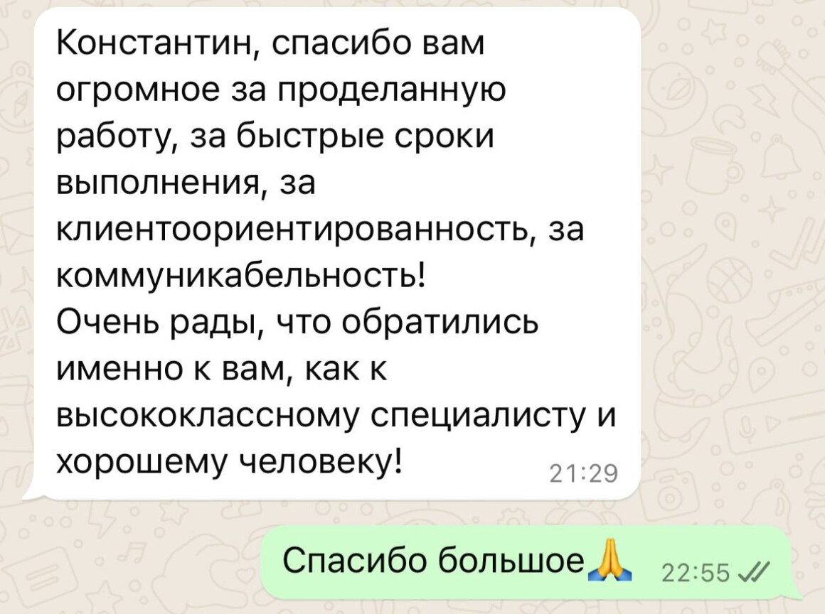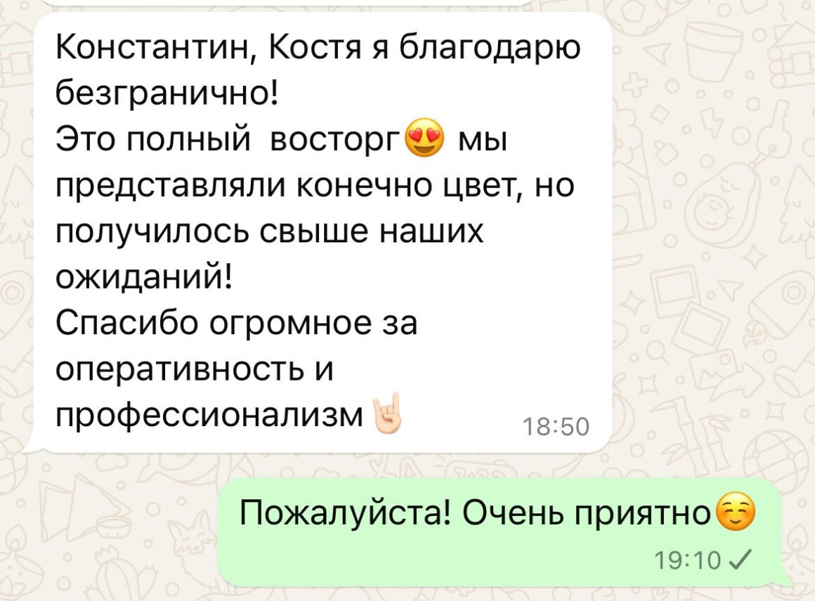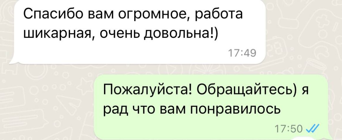 Мне нравится моя работа, её результаты, и довольные заказчики, которые возвращаются с новыми заказами вновь и вновь.